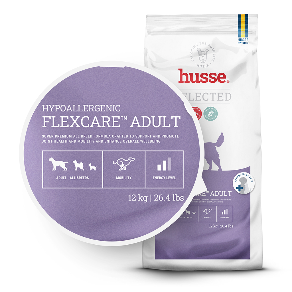 Hipoalerģiska un viegli sagremojama, šī sausā suņu barība ir pagatavota no kvalitatīvām sastāvdaļām, kas palīdz uzturēt un uzlabot locītavu kustīgumu. Bagātināta ar Husse Flexcare™ maisījumu, lai jūsu suns pilnībā izbaudītu katru pastaigu, atnešanas spēli un piedzīvojumu!