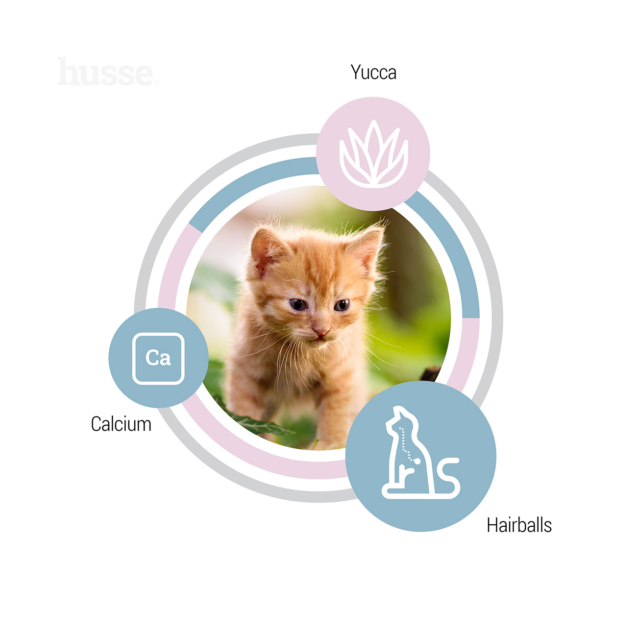 Kattunge ir pilnvērtīga barība kaķēniem. Šī Super Premium klases barība, kuras pamatā ir vistas gaļa, nodrošina optimālu olbaltumvielu daudzumu jūsu kaķēnam, lai barotu augošos muskuļus, ķermeņa sistēmas, ādu un kažoku. Pietiekams taurīna daudzums palīdz kaķēnam saglabāt veselas acis, sirdi un reproduktīvos orgānus. Husse Kattunge ir ieteicama kaķēniem no atšķiršanas līdz 12 mēnešu vecumam. Piemērots arī grūsnām un barojošām kaķenēm.